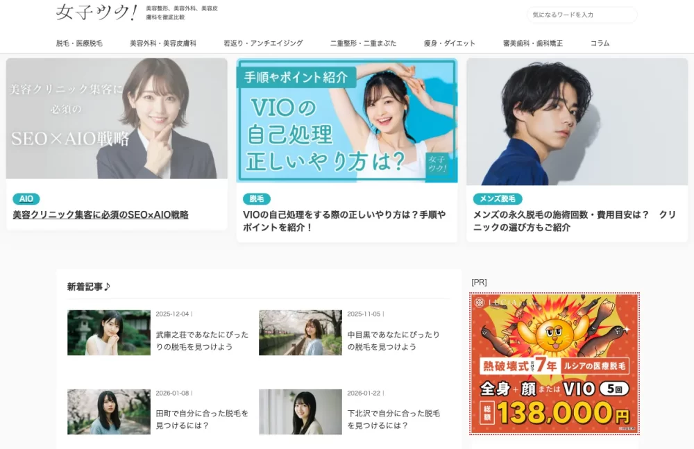 「女子ツク」は、美容整形・美容外科・美容皮膚科、脱